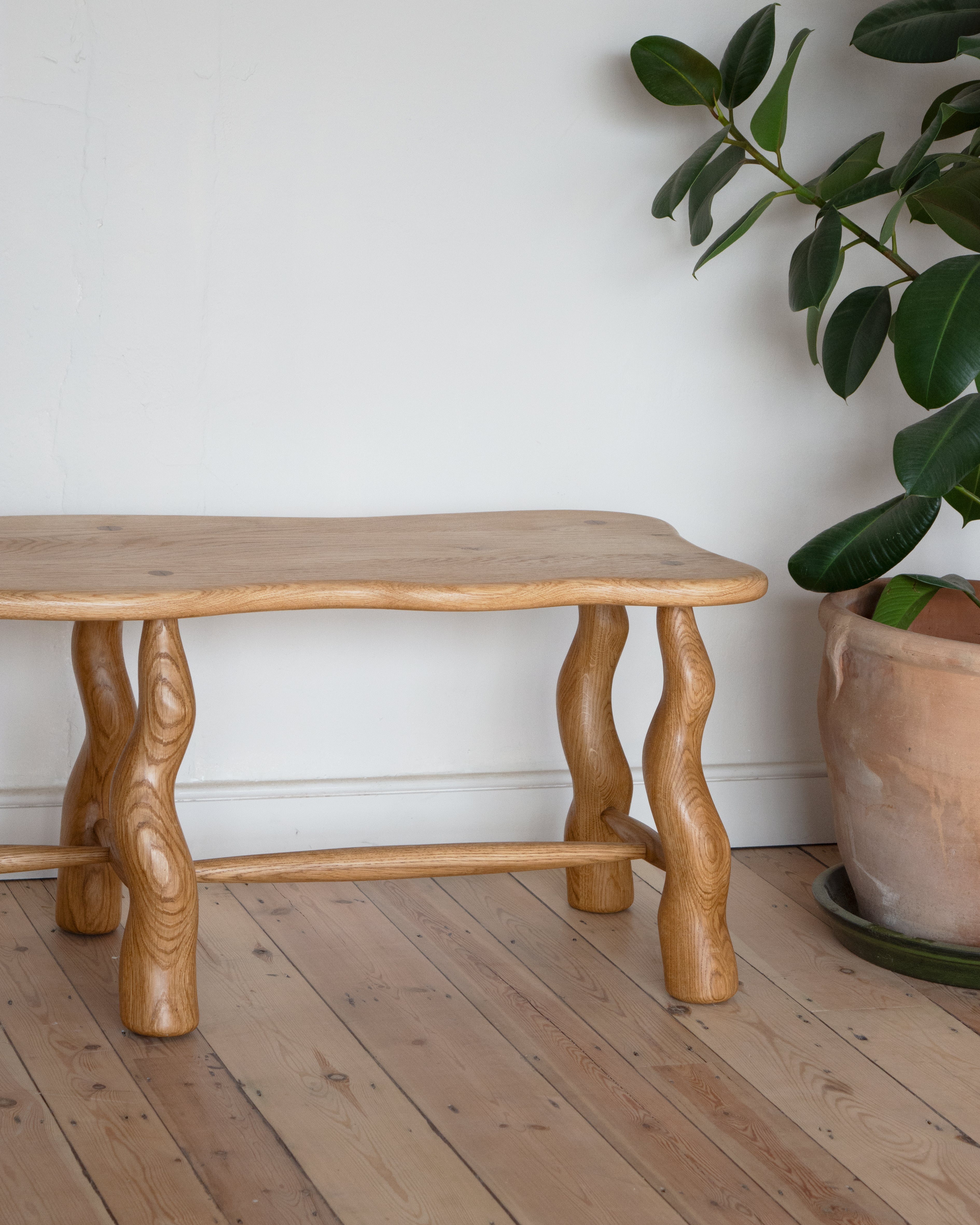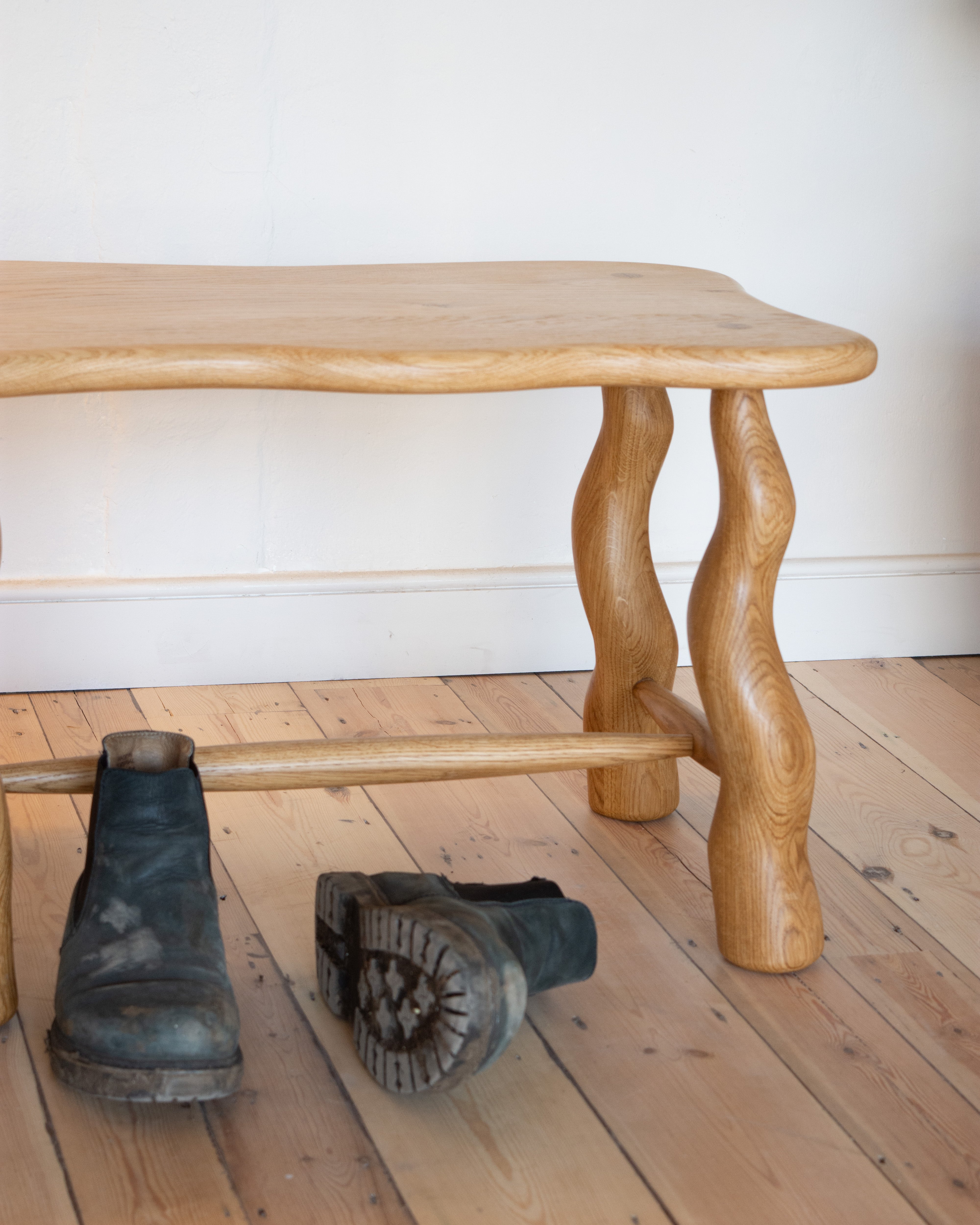 The Dancing Bench builds off a motif developed in-house. Made with minimal waste principles in mind, we sculpt with very little loss of material. Made of solid timber, the bench is an ode to the strength of hardwood.