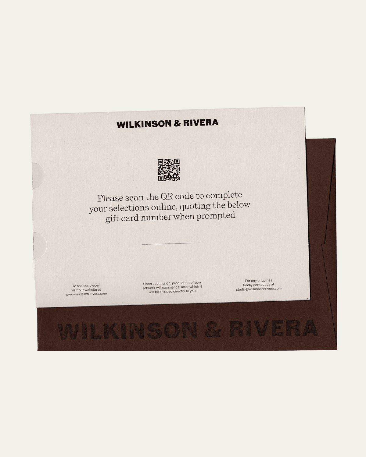 Each card is assigned a unique Gift Card number. After scanning the QR code on the reverse of the card they will be prompted to submit their order online.