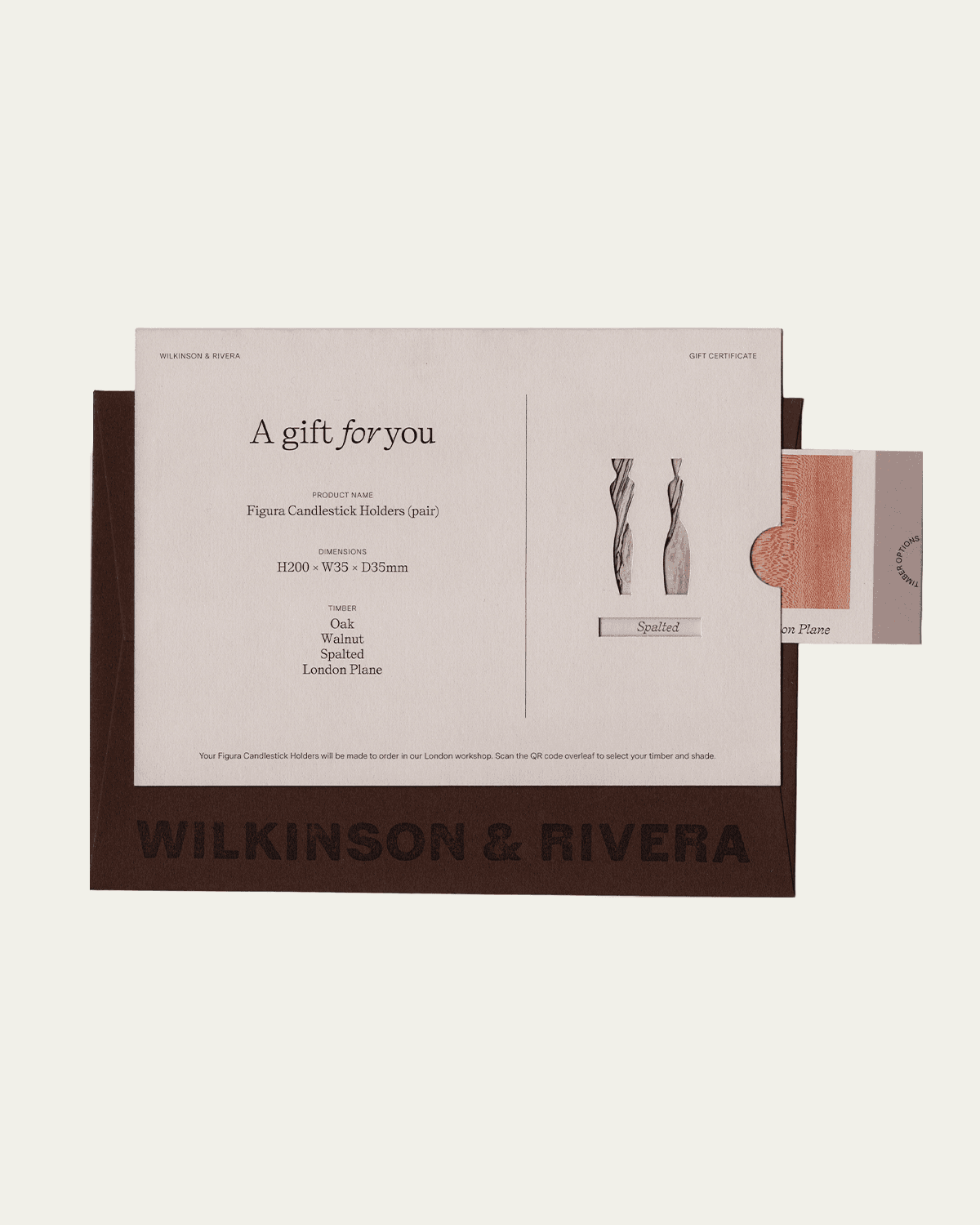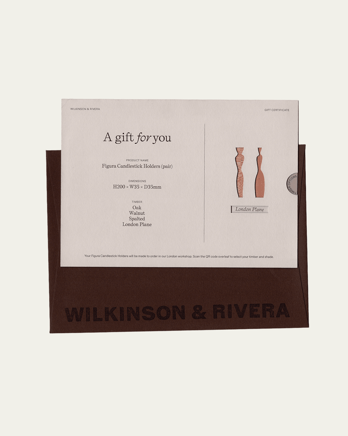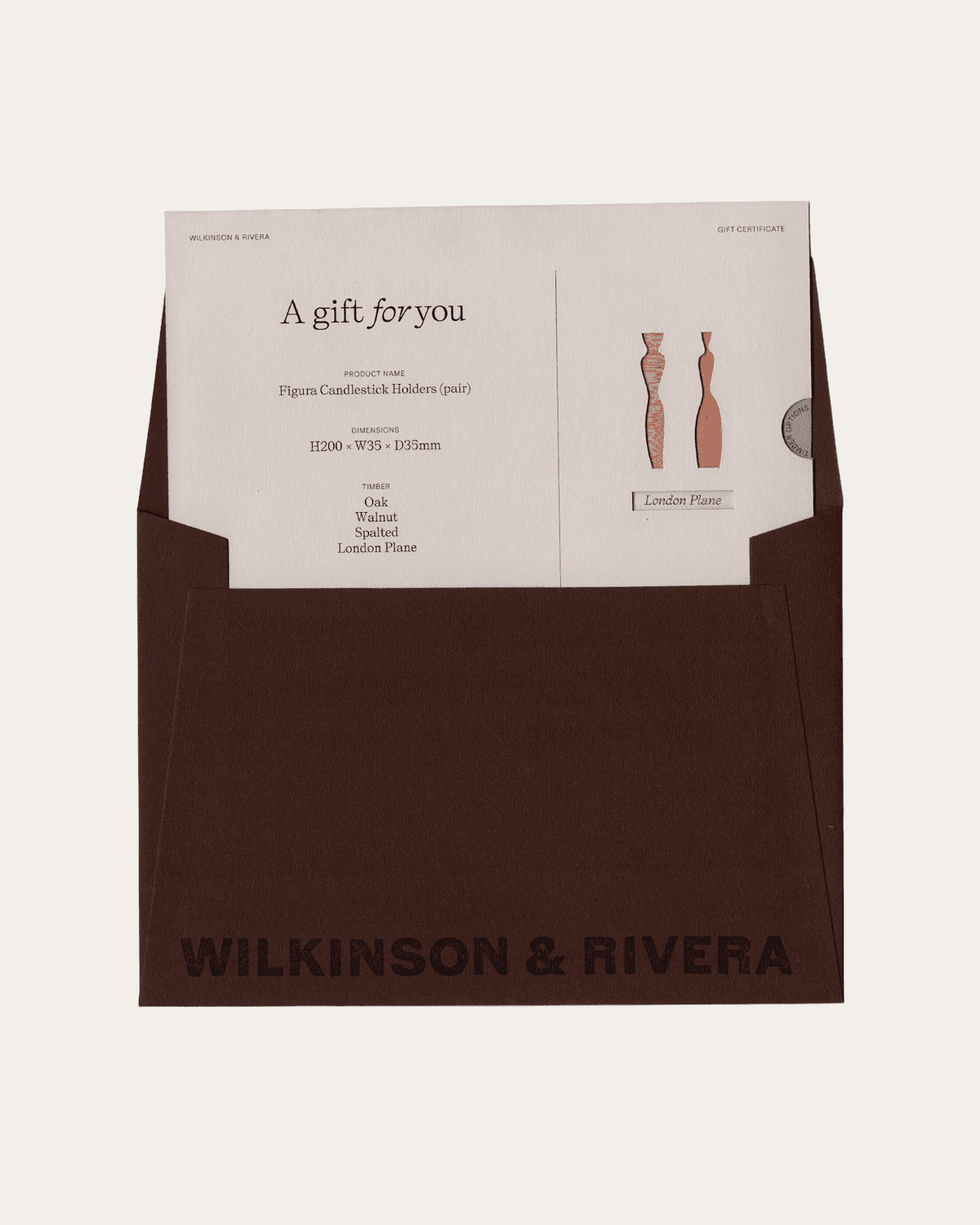 This gift card entitles the recipient to one pair of Figura Candlestick Holders of the same timber type, subject to availability