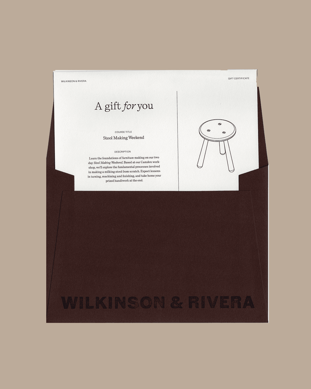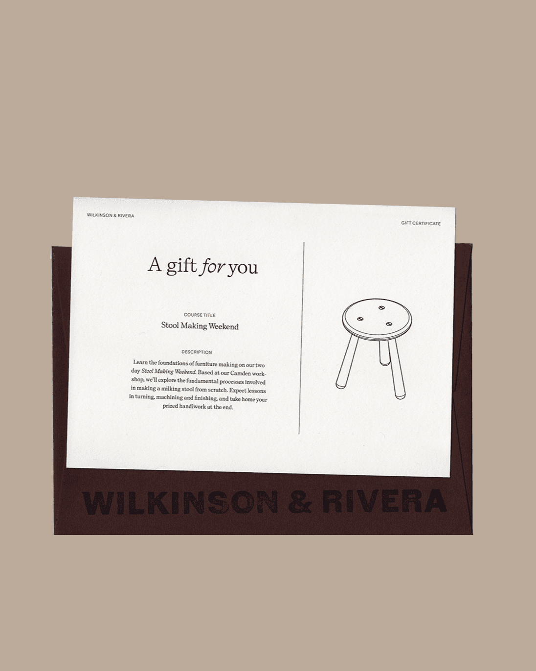 This gift card entitles the recipient to a spot on a Stoolmaking Weekend Course